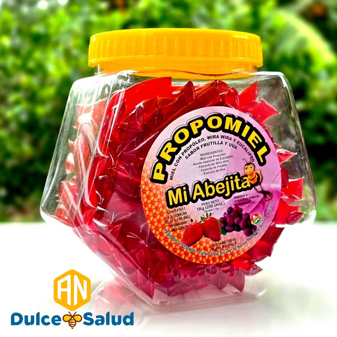 Propomiel Wira Wira y Eucalipto sabor Frutilla y Uva 1kilo 200 unidades